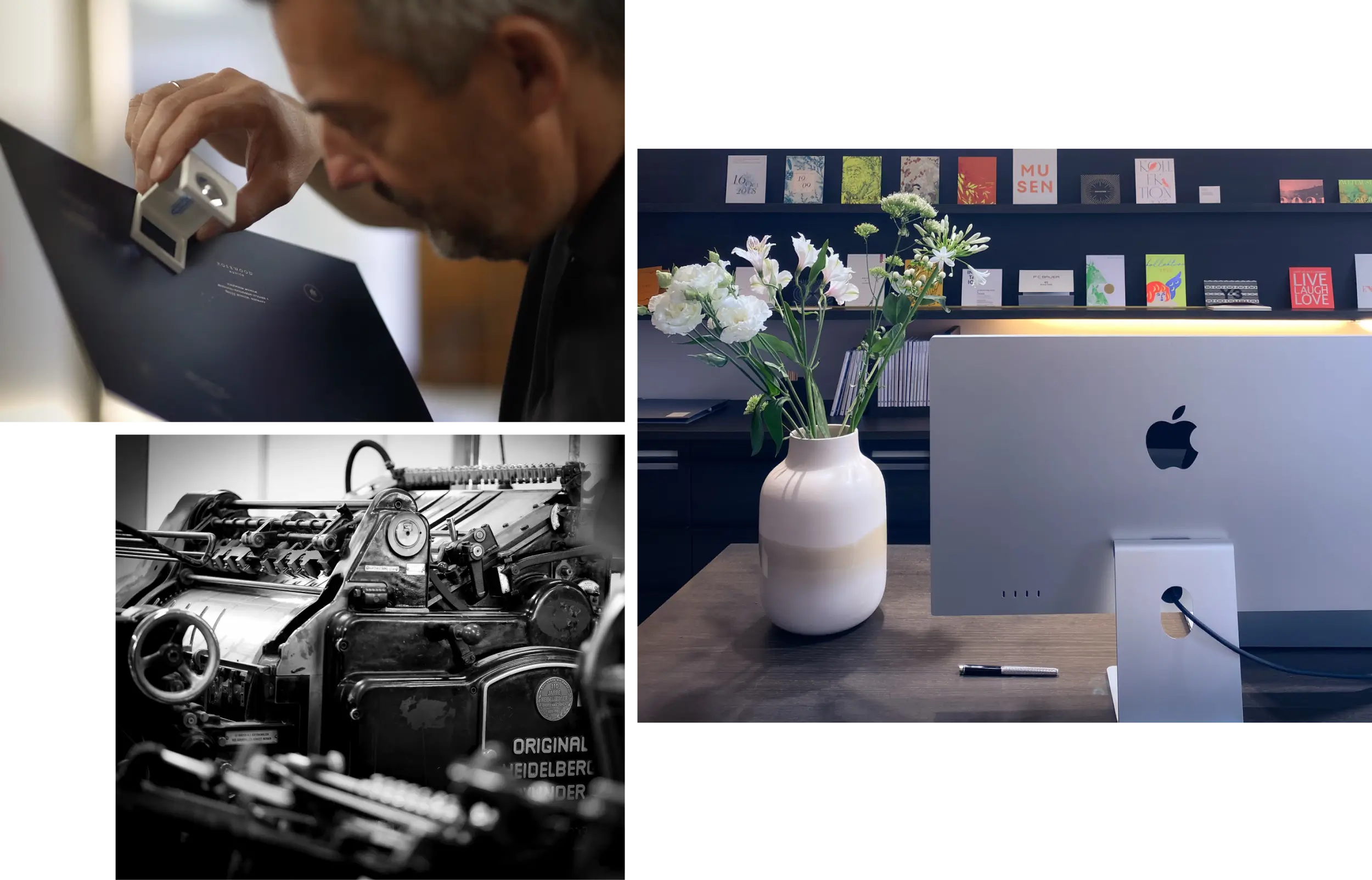 In unserer hauseigenen Manufaktur kümmern wir uns persönlich um die perfekte Umsetzung Ihrer Projekte. Dabei stehen uns sowohl traditionelle als auch moderne Produktionstechniken zur Verfügung. Besonders stolz sind wir auf unsere vielfältigen Veredelungs-Möglichkeiten und die große Auswahl an Papieren renommierter Hersteller, die wir unseren Kunden anbieten können. Diese Kombination aus Handwerk, Technik und Qualität ist einzigartig in München und heute kaum noch zu finden.
